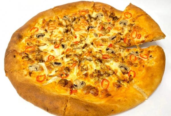Состав: курица терияки, пекинская капуста, чесночный соус, шампиньоны, перец халапеньо