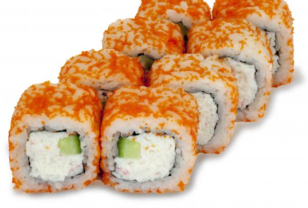 Состав: рис, нори, огурец, майонез, краб тобико