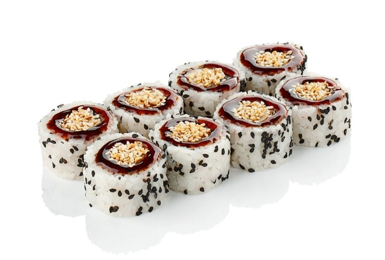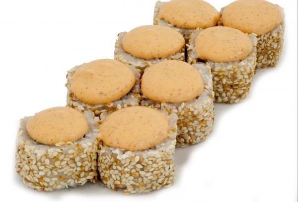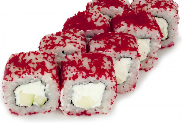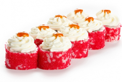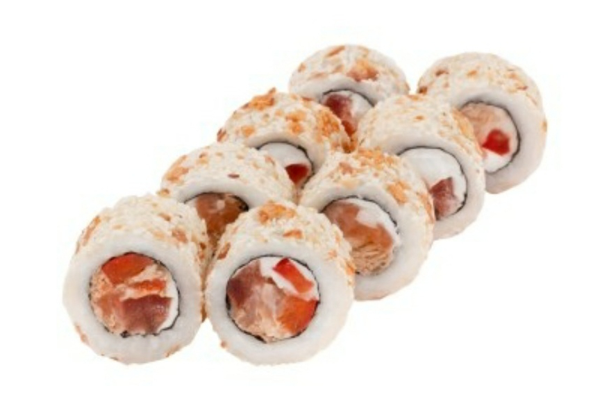 Состав: рис, нори, тунец, сливочный сыр, лук фри, болгарский перец, пекинская капуста