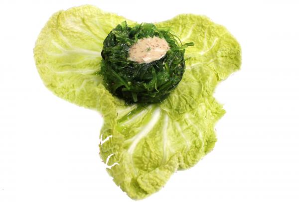 Состав: пекинская капуста, водоросли Чука, соус гамадари (ореховый)