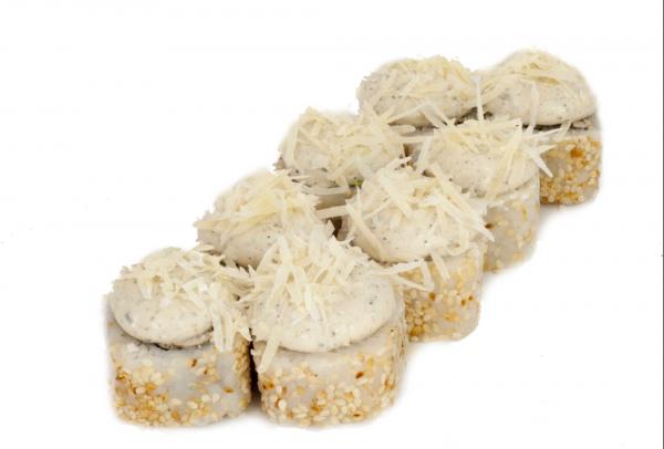Состав: рис, нори, лист салата, креветка, сливочный сыр, соус цезарь, сыр пармезан