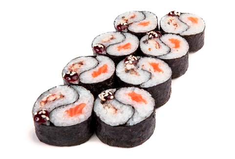 Состав: рис, нори, лосось, сливочный сыр, огурец
