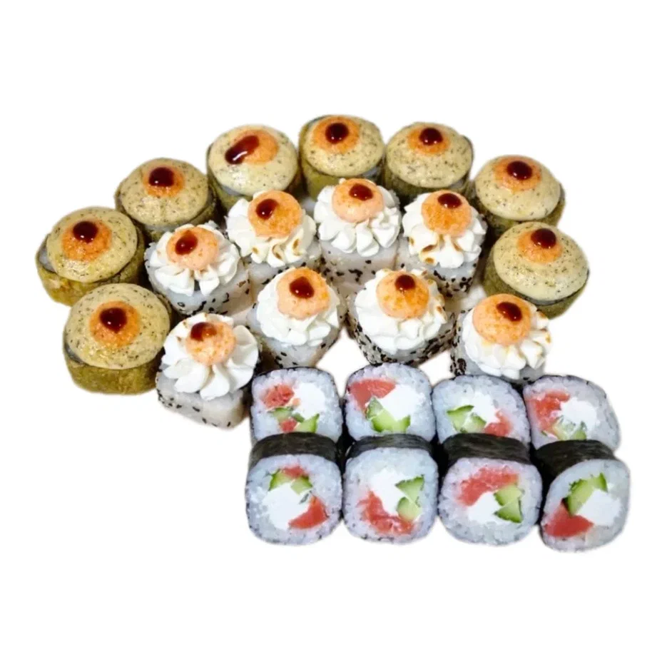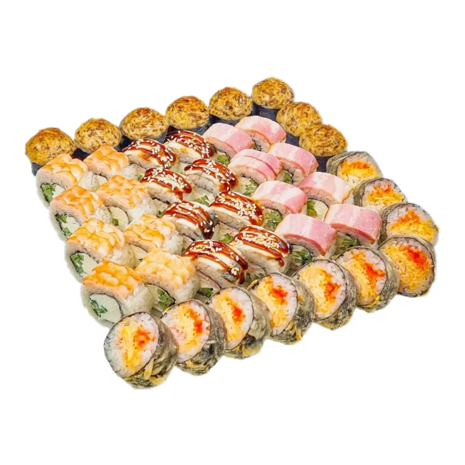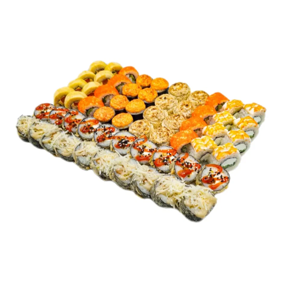 Состав: калифорния, цезарь хот, свит чили, филадельфия, кунцей, ига запеченная, канада, якудза, сяке фрай