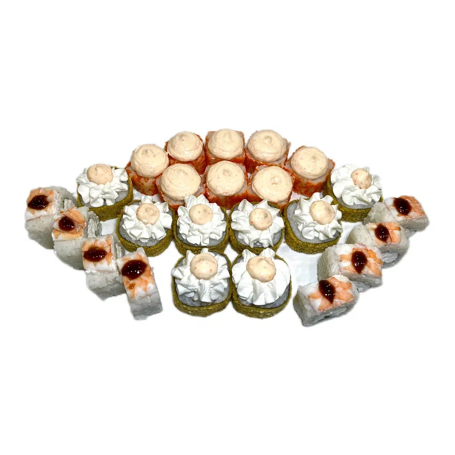Состав: креветка фреш, калифорния, цезарь хот, драйв, египет, ига запеченная филадельфия фот